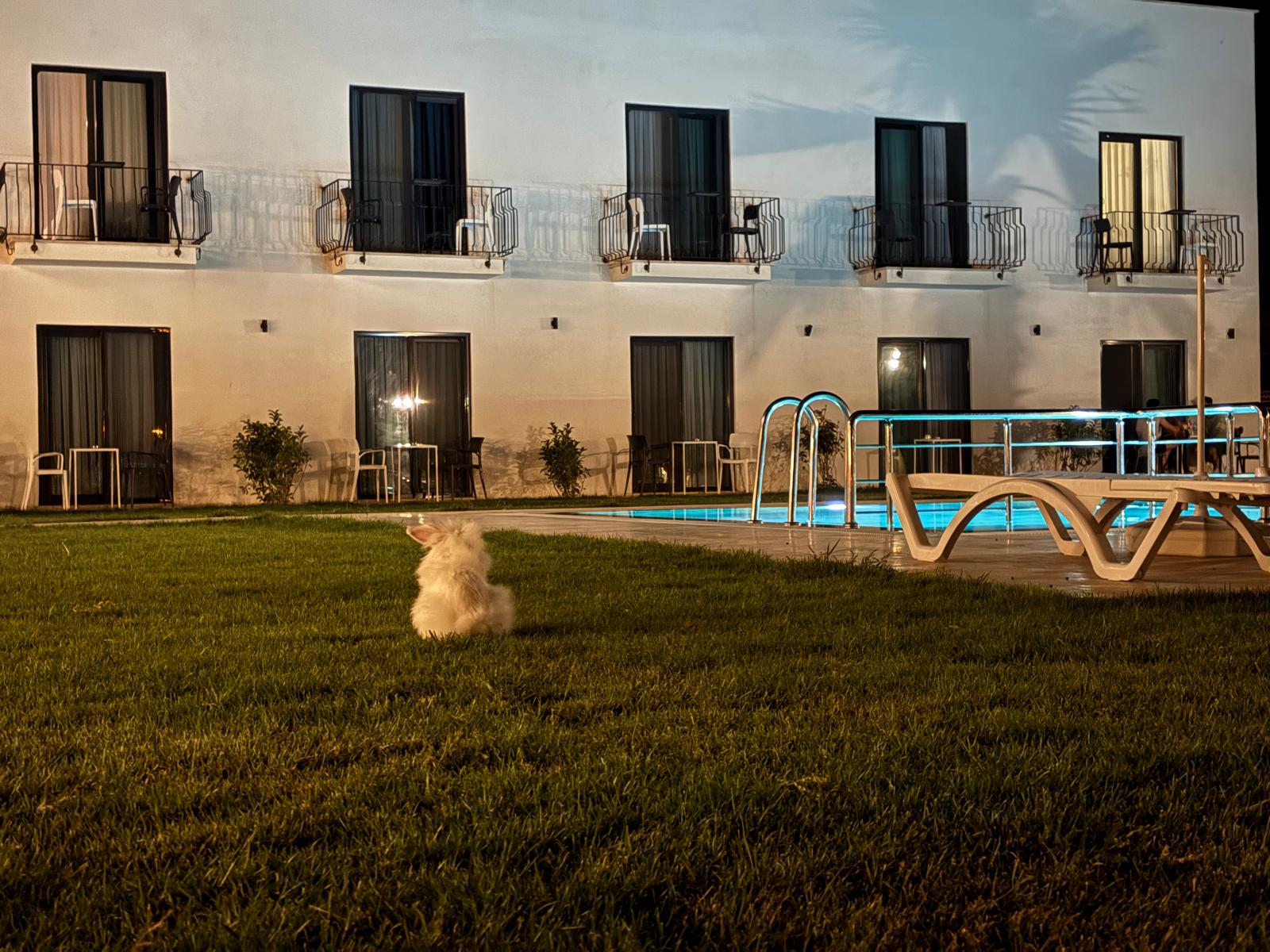 Kirykos Otel misafirlerine adanın muhteşem yaz havasında sakin ve huzurlu bahçesinde güzel bir havuz keyfi vaat etmektedir.